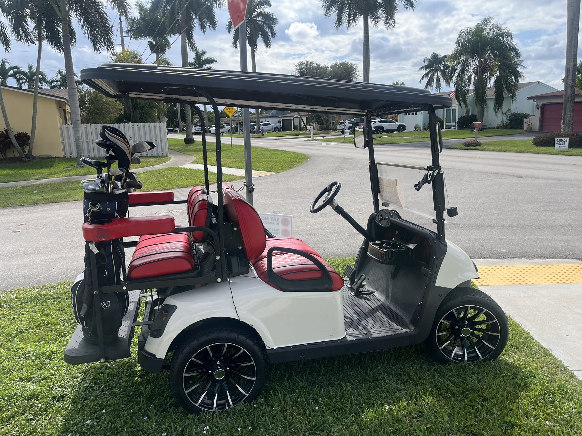 Good working golf cart everything has been updated new tires brand new lithium battery new seat runs good perfect for family use and outdoor riding and it’s street legal golf bag and golf clubs included Firm on price Pick up only