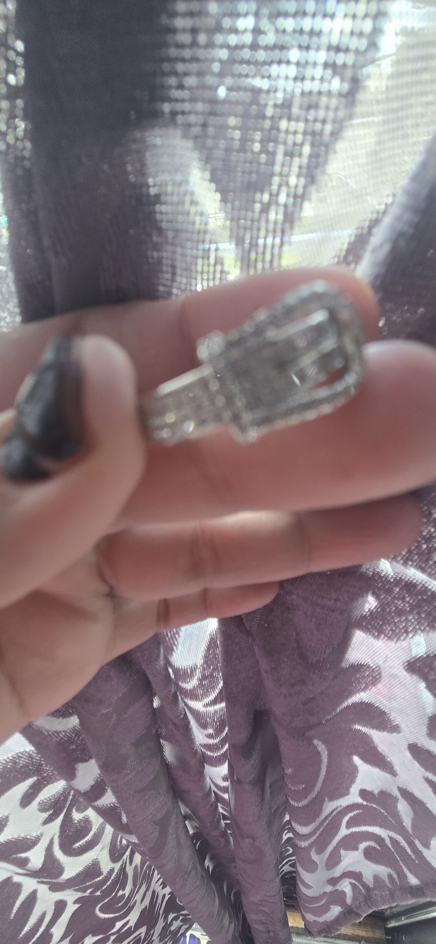 A Very nice ring shines in the sun ..looks like a belt..looks expensive..it was a gift and didnt fit me..otherwise I wont sell it..at all..asking 20$ or best offer..reasonable offers please..