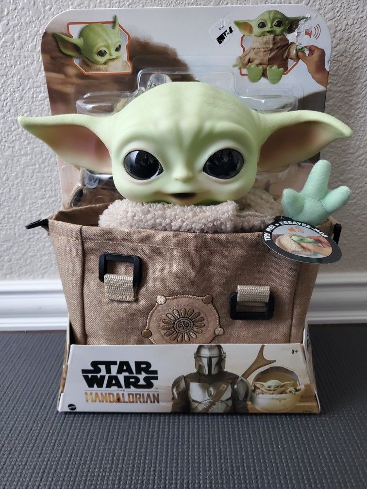 Star Wars Grogu Plush Toy, 11-in The Child from The Mandalorian, Collectible Stuffed Character with Carrying Satchel for Movie Fans, Ages 3 Years and Older New in Box Push button and toy talks