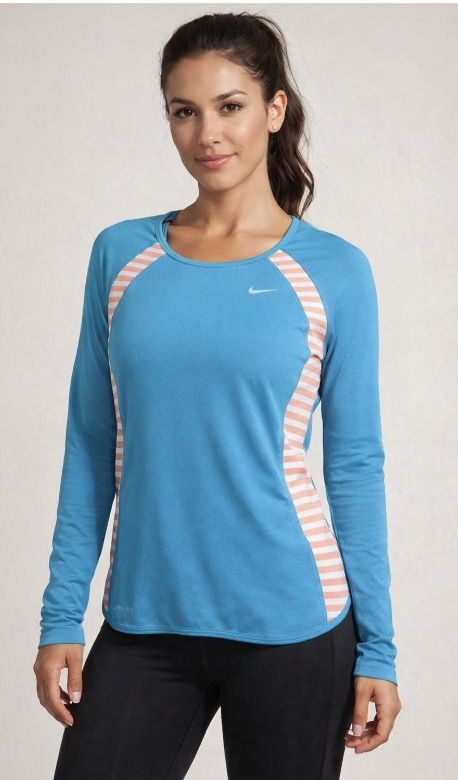Nike Dri-FIT long-sleeve athletic shirt in blue with striped side panels. In great condition Size is XS