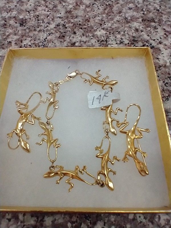 14 karat yellow gold lizard bracelet with matching earrings size 7" , 15.7 g really cool must see to appreciate. 3315 East Hillsborough avenue Tampa Florida 33610