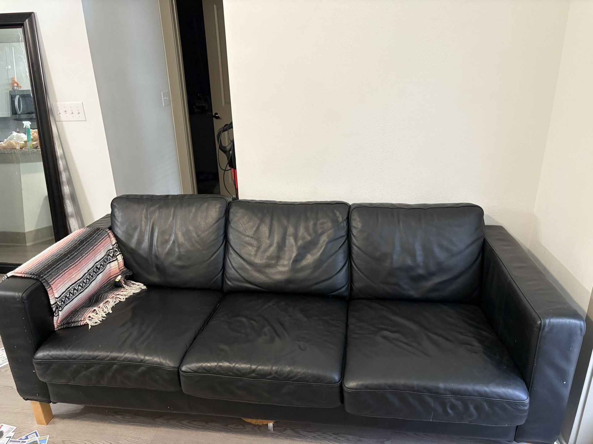 Like new black leather couch