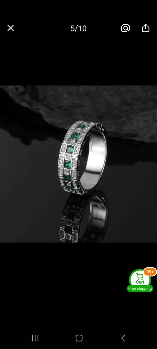 Men's Women's 14K White Gold Plated Emerald Green Cubic Zirconia Ring 9