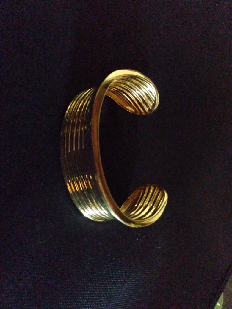 Up4sale here is a gold over sterling silver open cuff bangle bracelet. Excellent condition. 30.1 grams 925 silver with yellow gold plated.