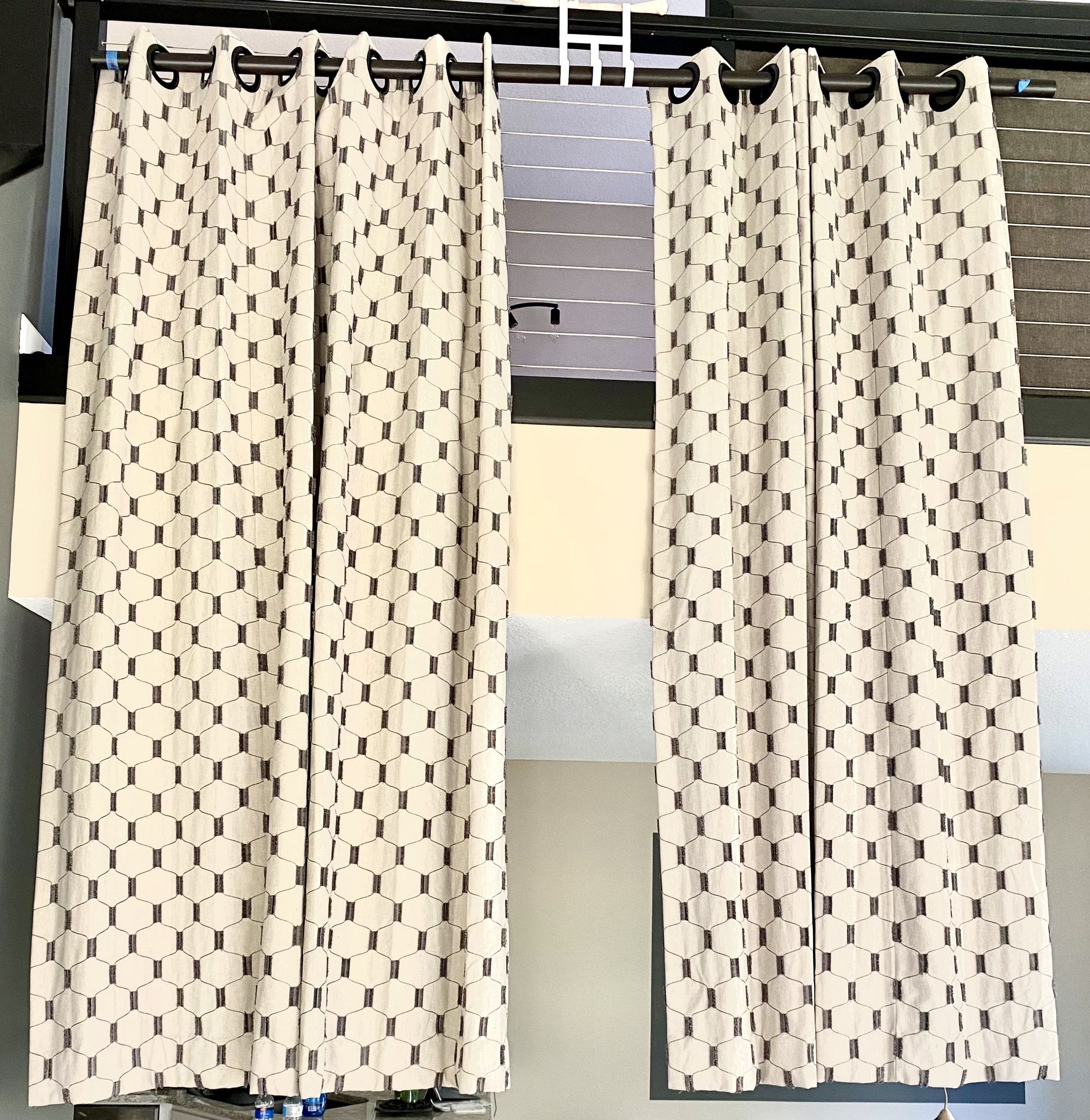 Fully lined. Room darkening when pulled shut. Each panel 91” x 72” wide. Includes rod & hardware.