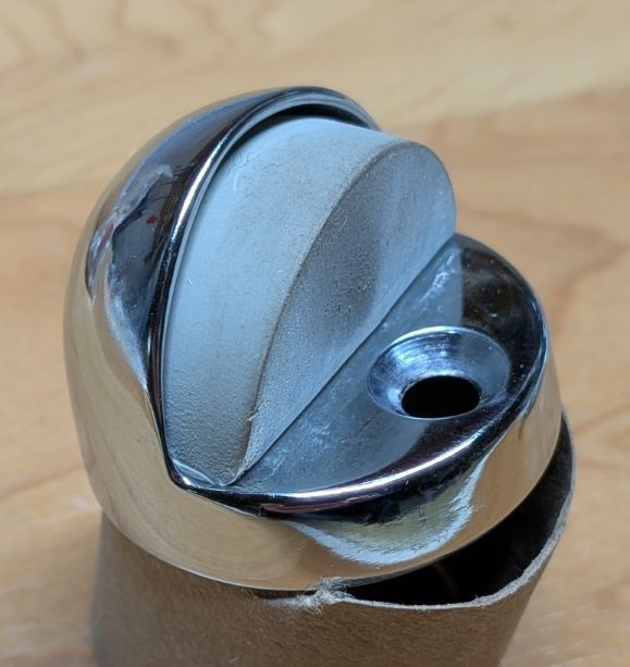Wall Protector Floor Door Stops $3 each New. I have several quality door stops that are to be attached to a floor to keep a door from opening past a certain point so it does not hit a wall and make dents and holes in the drywall. I am willing to give a better price if you buy several. The bottom of these stops is 3/8 inch.