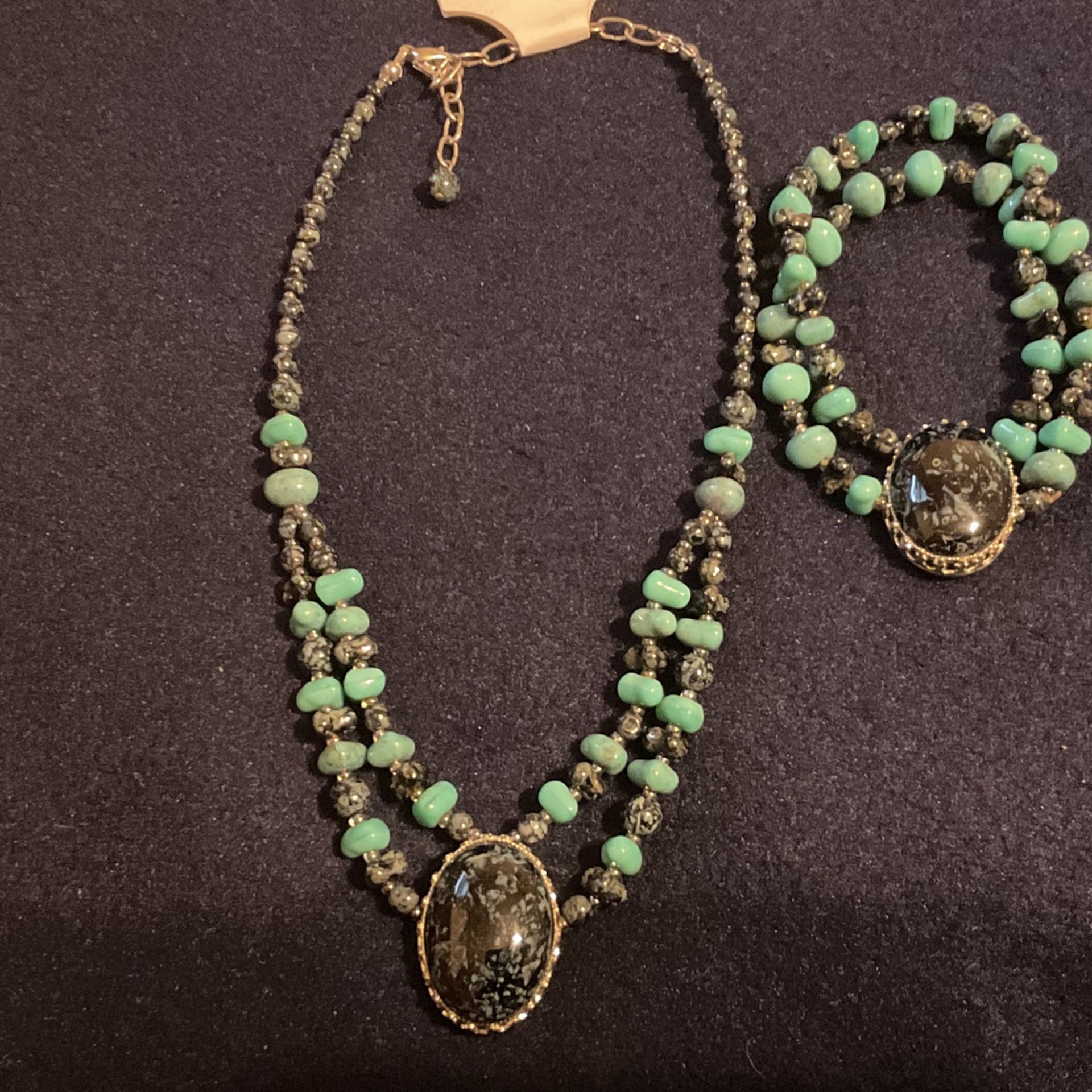 16” Beaded Necklace Set With Matching Stretch Bracelet