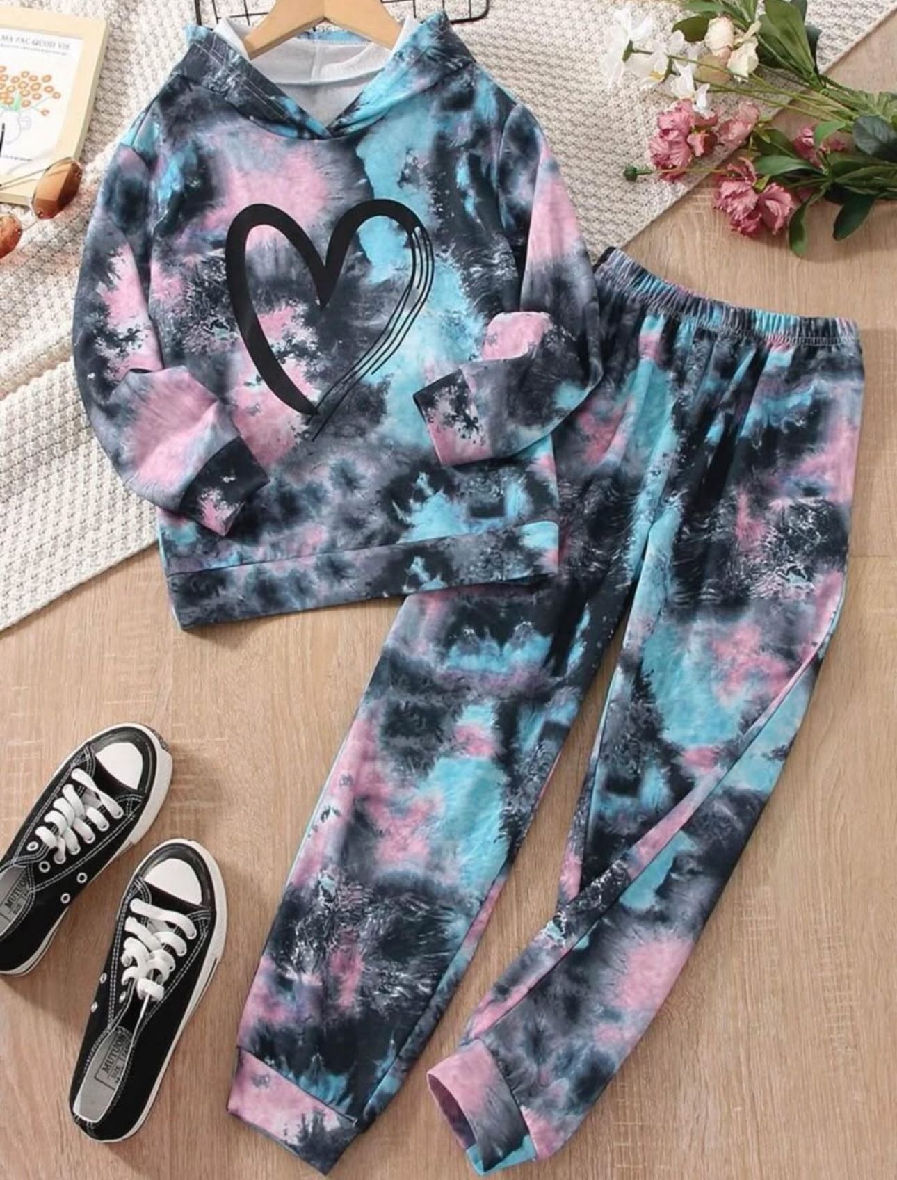 Girls Heart Print Tie Dye Hoodie & Sweatpants (girls)