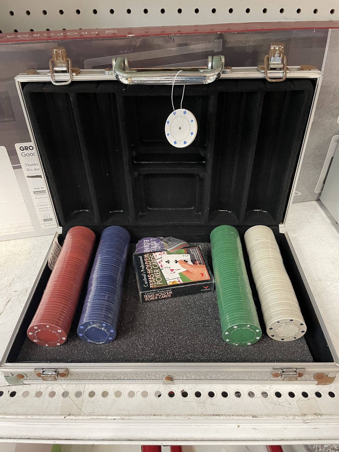 Stop by Pawnmax and check out this Small Poker Set we just got in stock! Outside case is a bit beat up but the set inside is still in its original plastic!! Priced at $25 Stop by 3696 Tampa Rd Oldsmar Fl 34677 or contact us on here with any questions or concerns!!