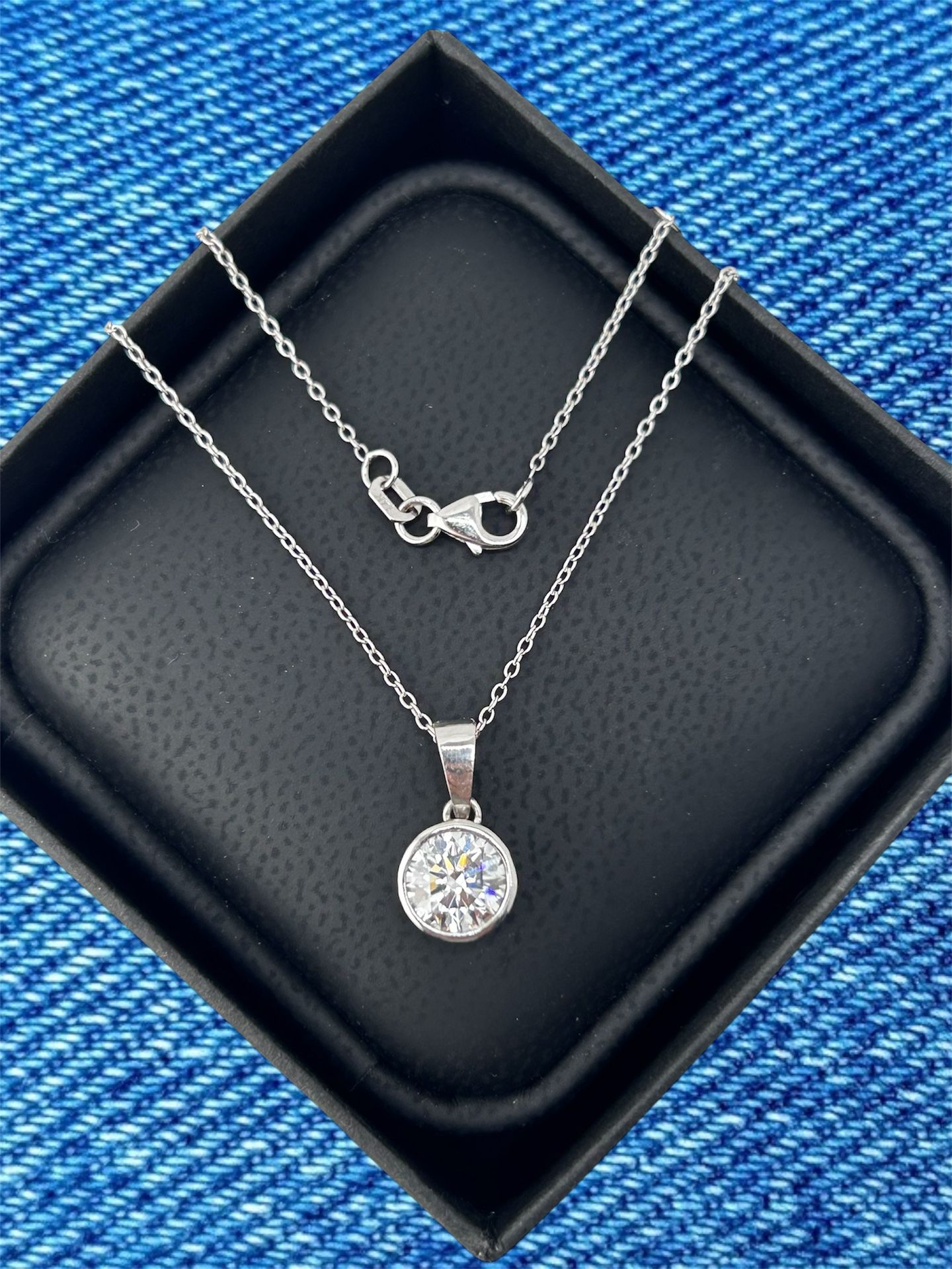 Round diamond pendant Brand New 14k white solid gold 1 carat diamond weight 16-18β inches length Lab-grown diamond π **We have more this types of necklace **