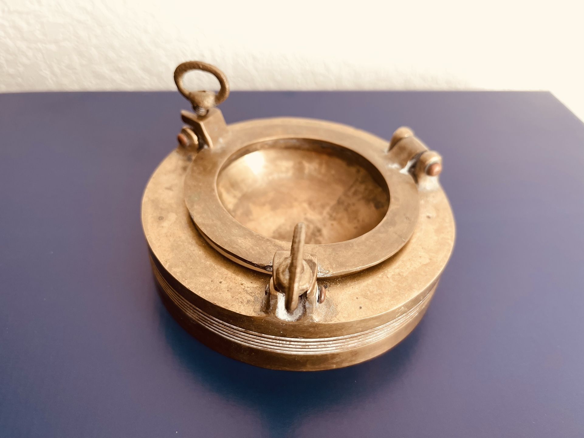 Vintage Nautical Bronze Glass Port Hole Trinket box Paper Weight Ashtray