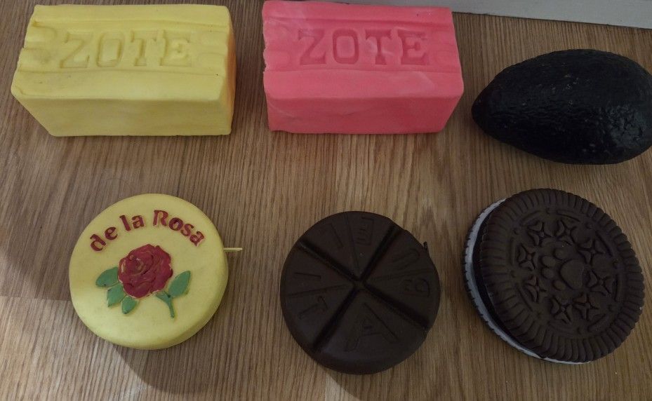 Monederos en forma de javon zote, aguacate, galleta oreo, mazapán, chocolate abuelita