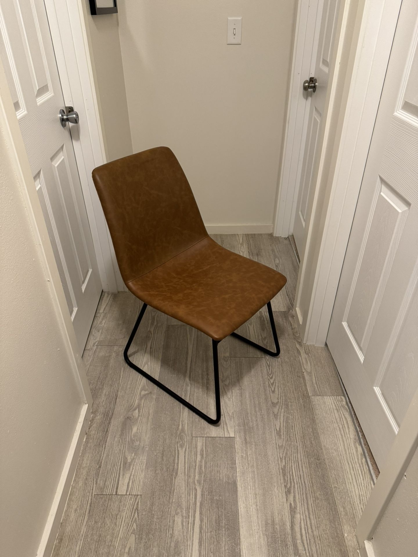 Gently used bought last year used them for 3 months. From target threshold Bowden faux leather chairs. 6 chairs for 400$