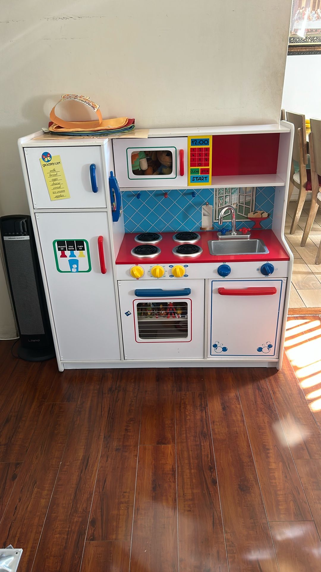 Kitchen for kids it’s in great shape well taken care of includes stove and microwave and lots of space I have plenty of food and pots and pans but for extra price msg me if interested!!