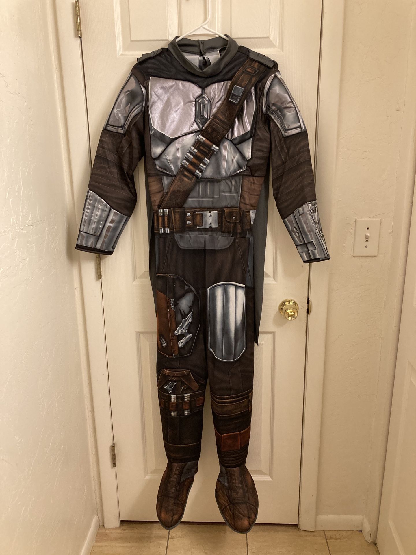 Size XL (kids) Mandalorian star wars costume. Worn twice. Can fit a small adult or teen up to about 5’7”.