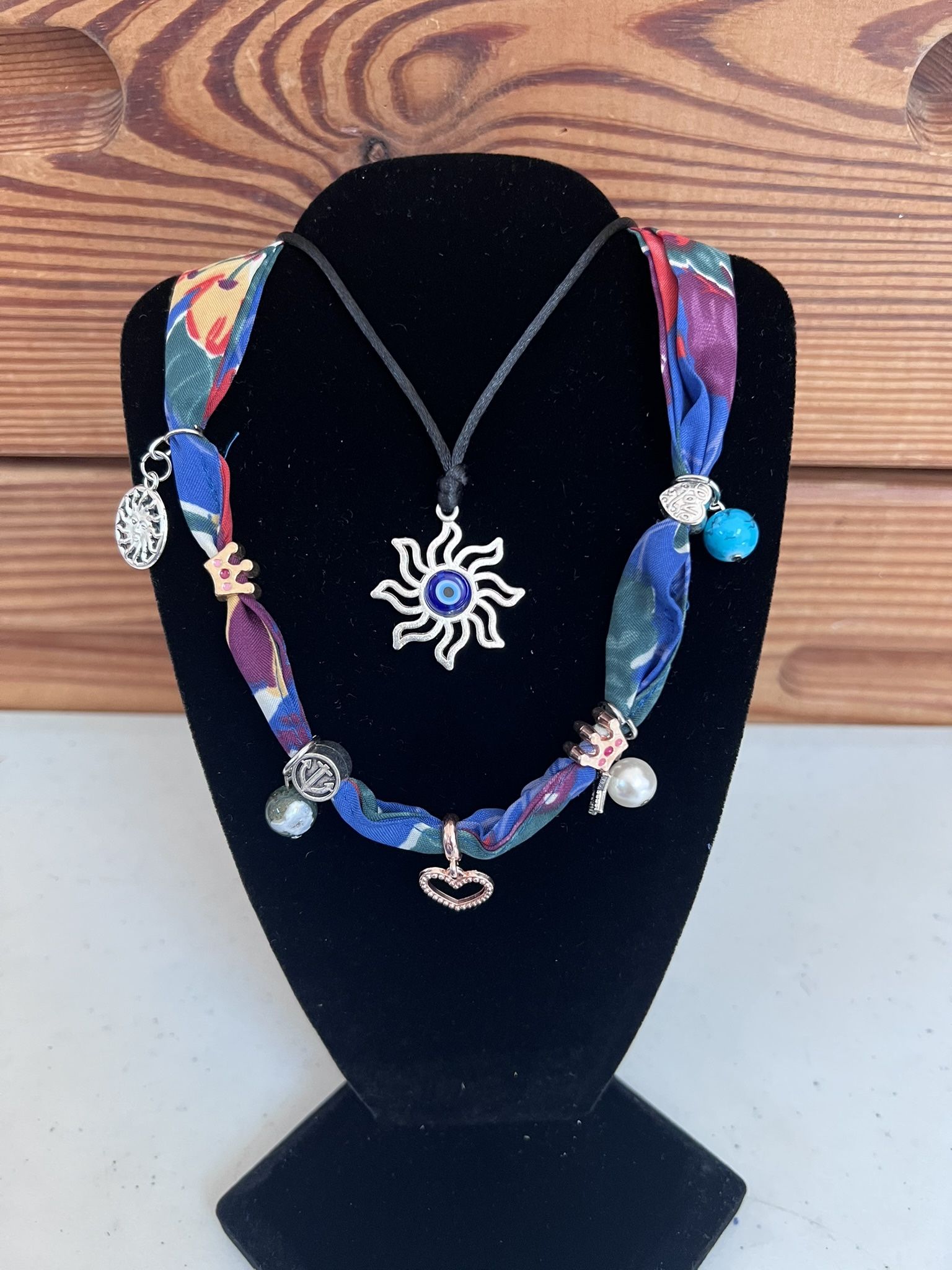 2 Necklaces Sun With Evil Eye And Tropical Charmed Necklace