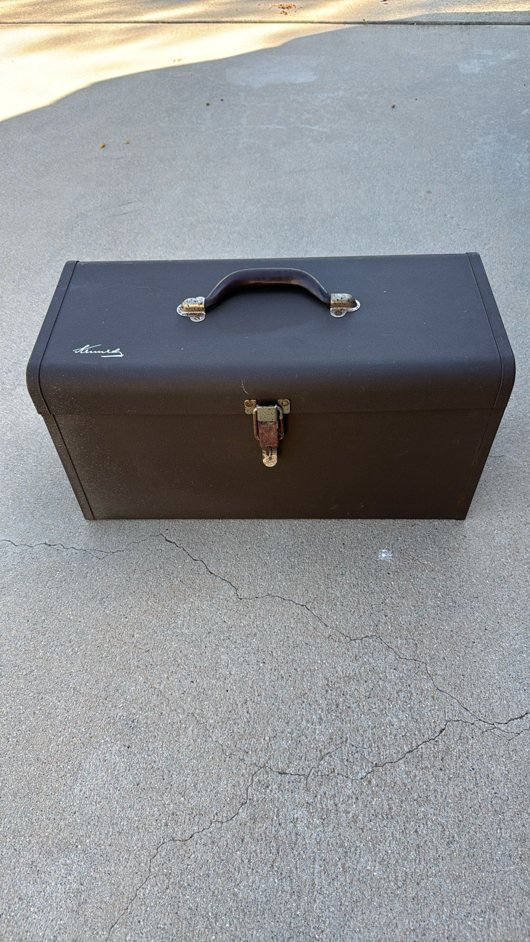 Solid toolbox. A little rust on the chrome. There is some white paint overspray in one area.