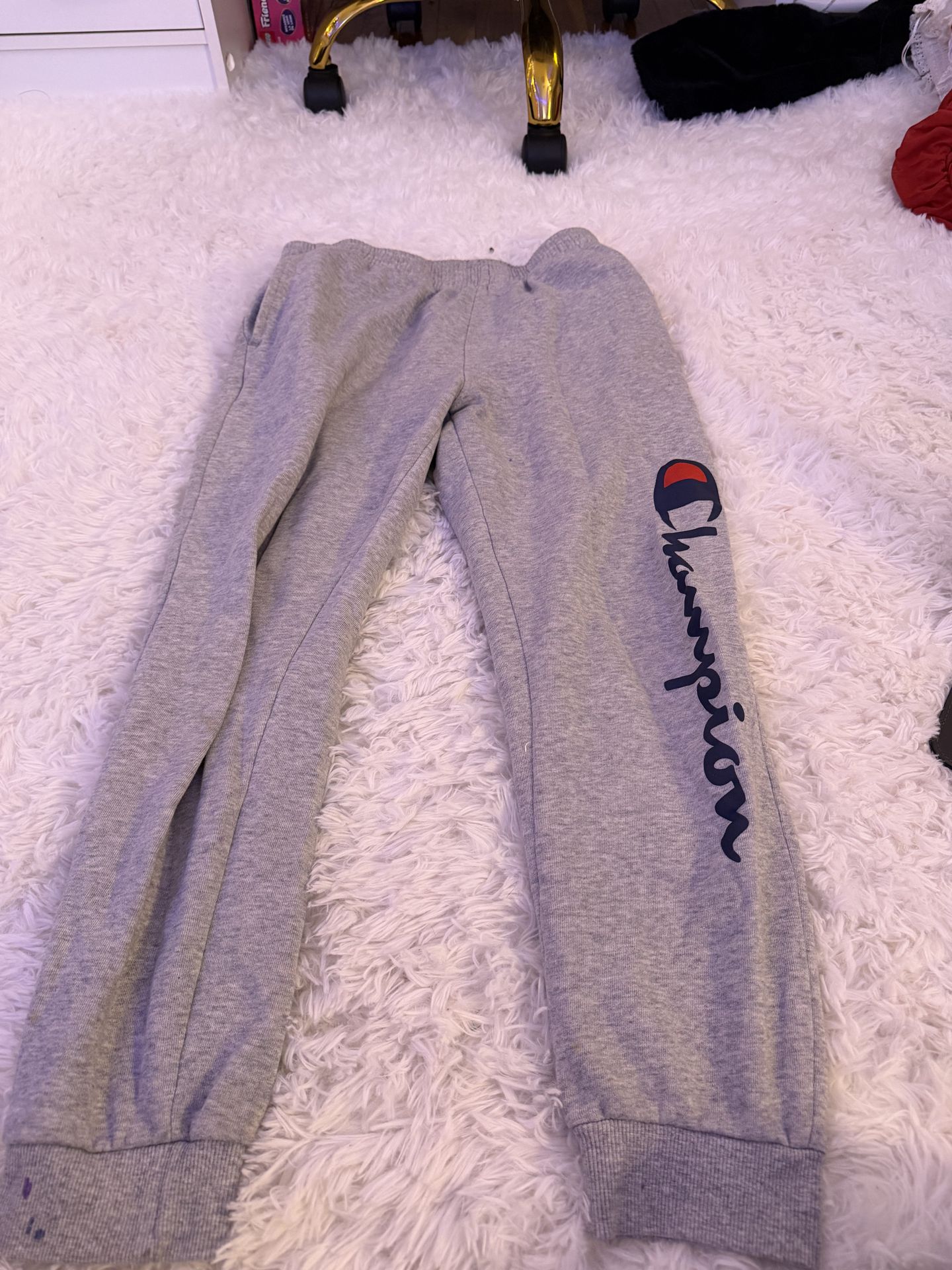 light grey champion sweatpants with logo size large