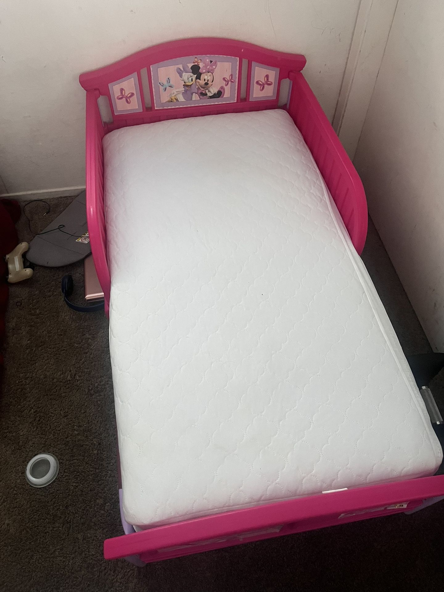 This bed was for my daughter she only slept on it for about a month the mattress is new and has never Ben slept on without a sheet,.