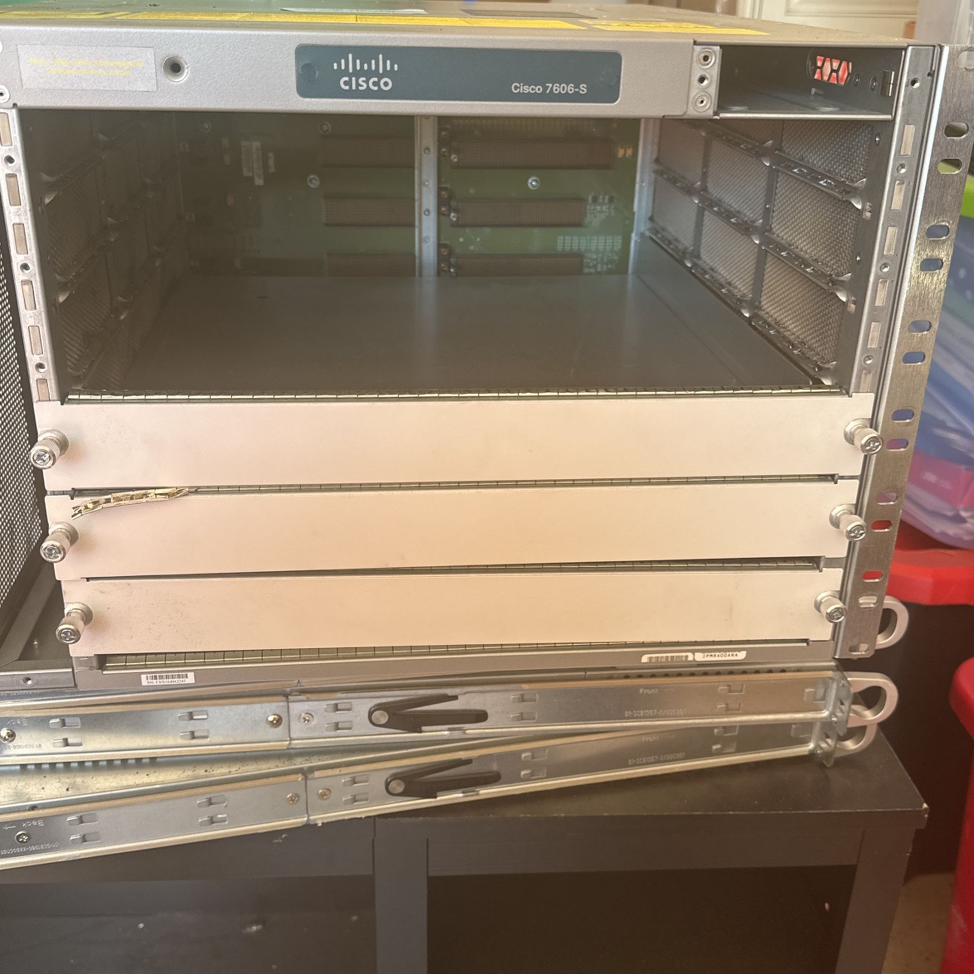 - -This is just the chassis and Blanks - The Cisco® 7606-S Router is a compact, high-performance router designed in a 6-slot form factor for deployment at the network edge, where robust performance and IP/Multiprotocol Label Switching (MPLS) services are necessary to meet the requirements of both enterprises and service providers. It enables Carrier Ethernet service providers to deploy an advanced network infrastructure that supports a range of IP video and triple-play (voice, video, and data) system applications in both the residential and business services markets. The Cisco 7606 also delivers WAN and metropolitan-area network (MAN) networking solutions at the enterprise edge.