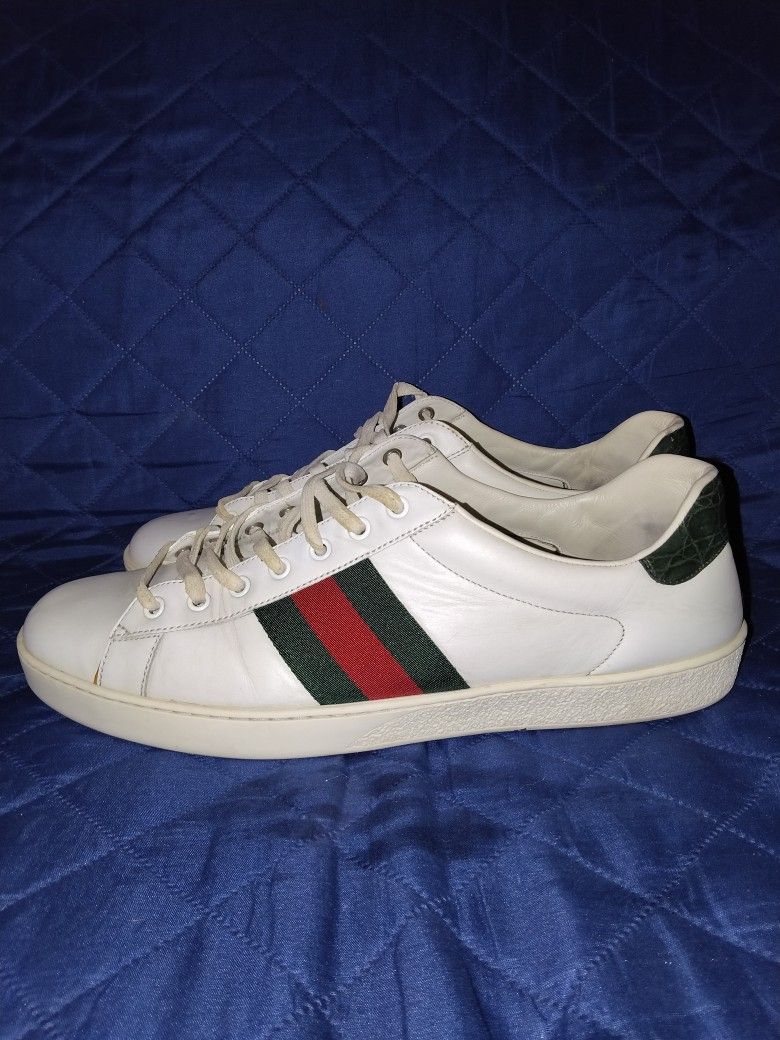 Gucci Ace White sneaker for men size 12 and a half in good condition compared to the ones I see online a quick wipe down a little TLC and these bad boys are flavor willing to negotiate price Willing to negotiate a trade