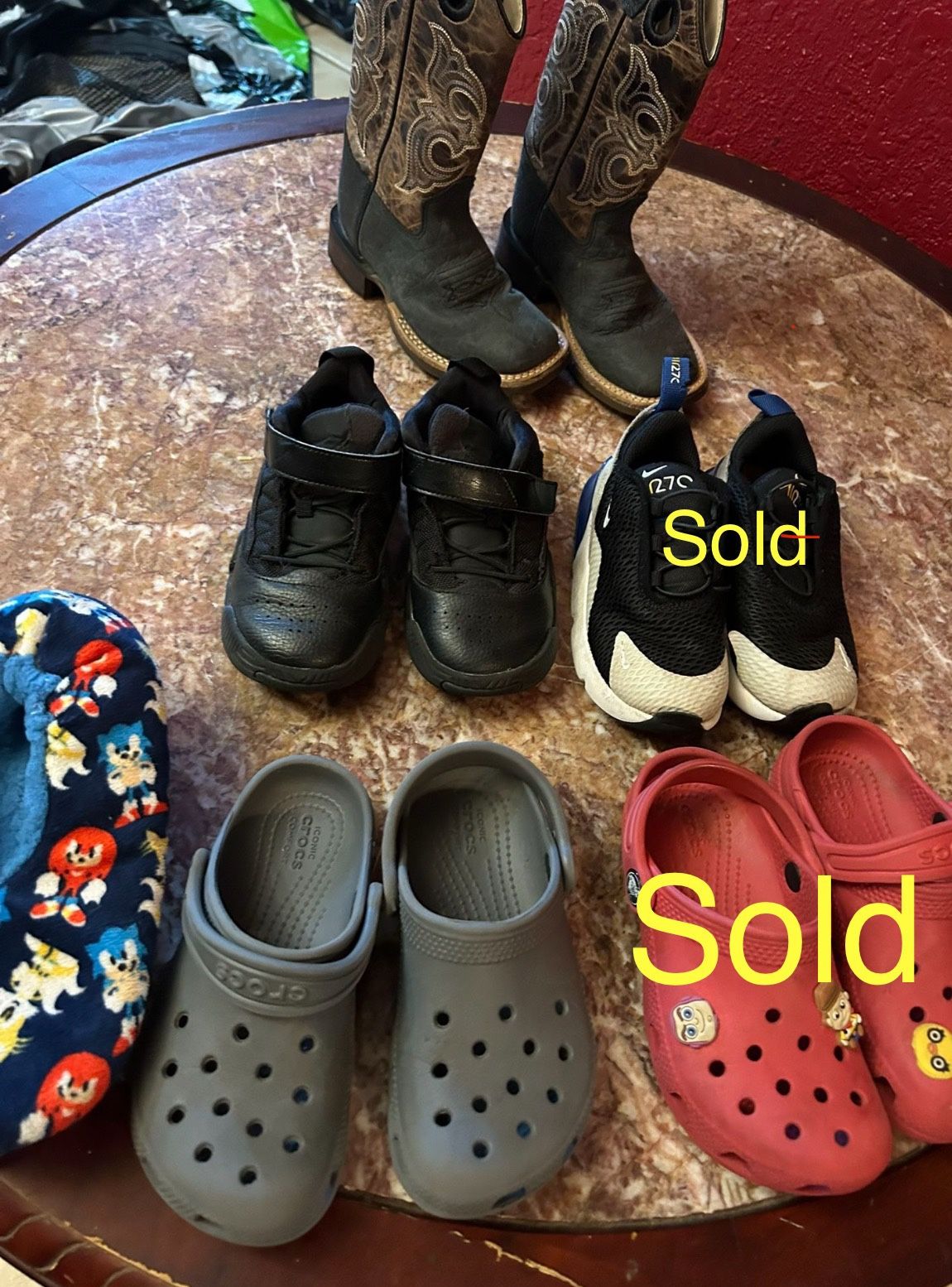 Crocs $5 each Tennis $10 each Boots $15 Mpu