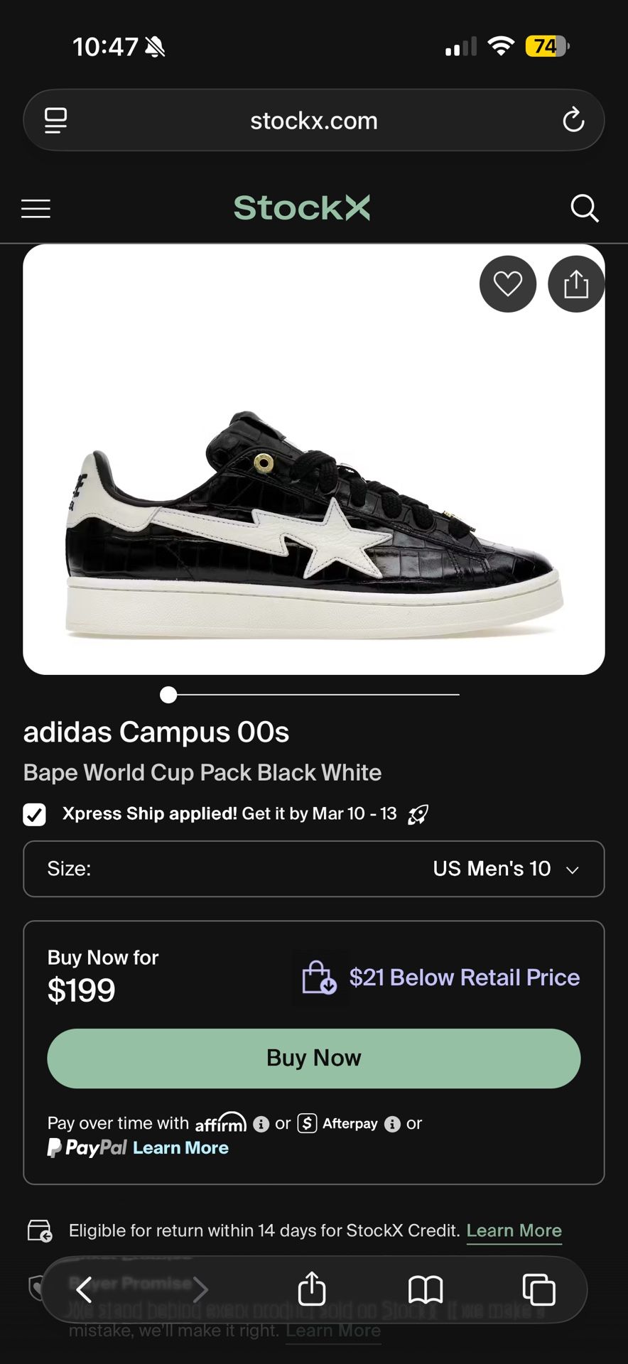 ADIDAS x BAPE CAMPUS 00S BAPE size 10 brand new in box