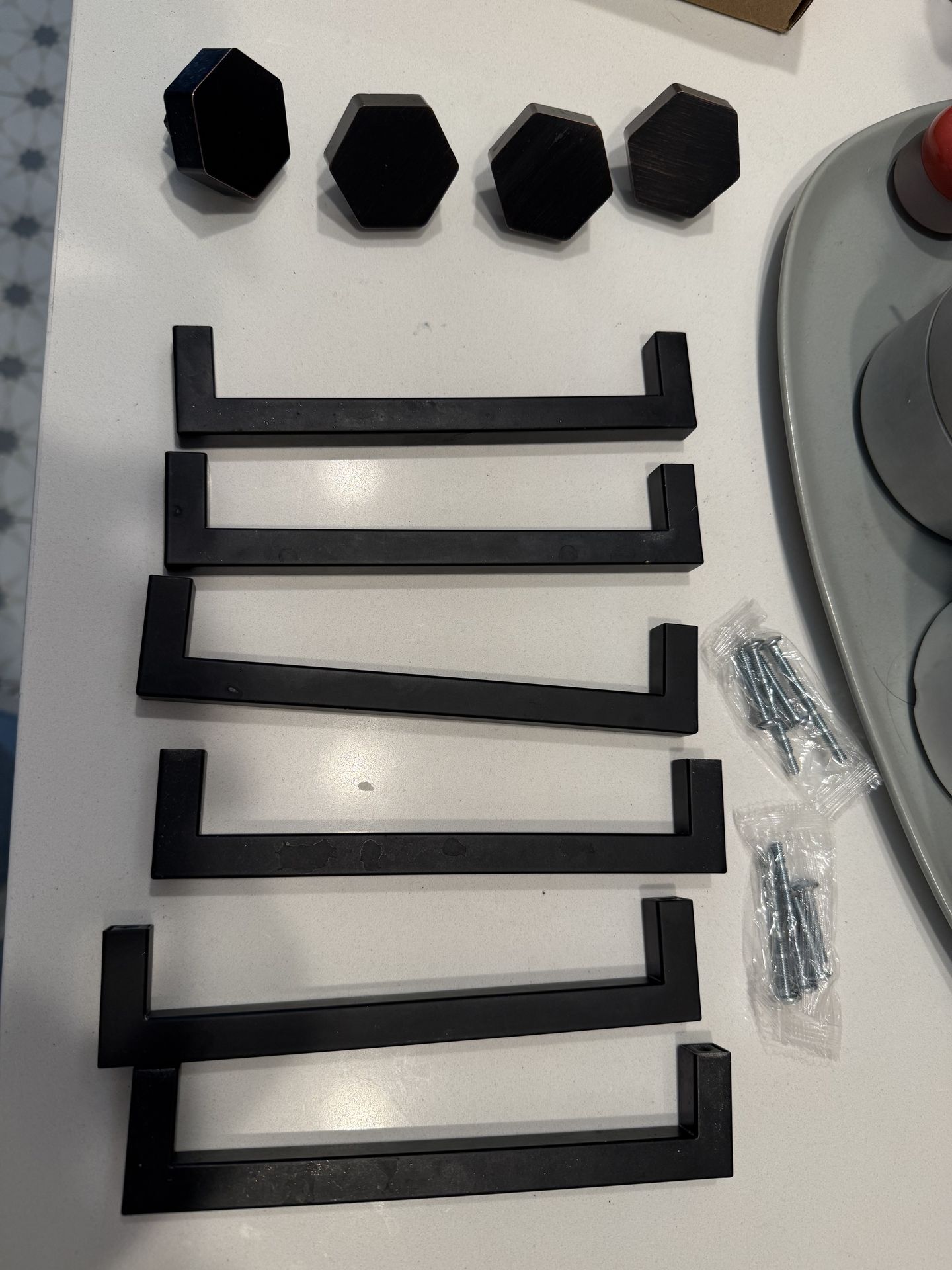 Bathroom Cabinet Handles Matte Black Cabinet Pulls 6 handles 6-1/4 Inch(160mm) 4 knobs Brand new screws