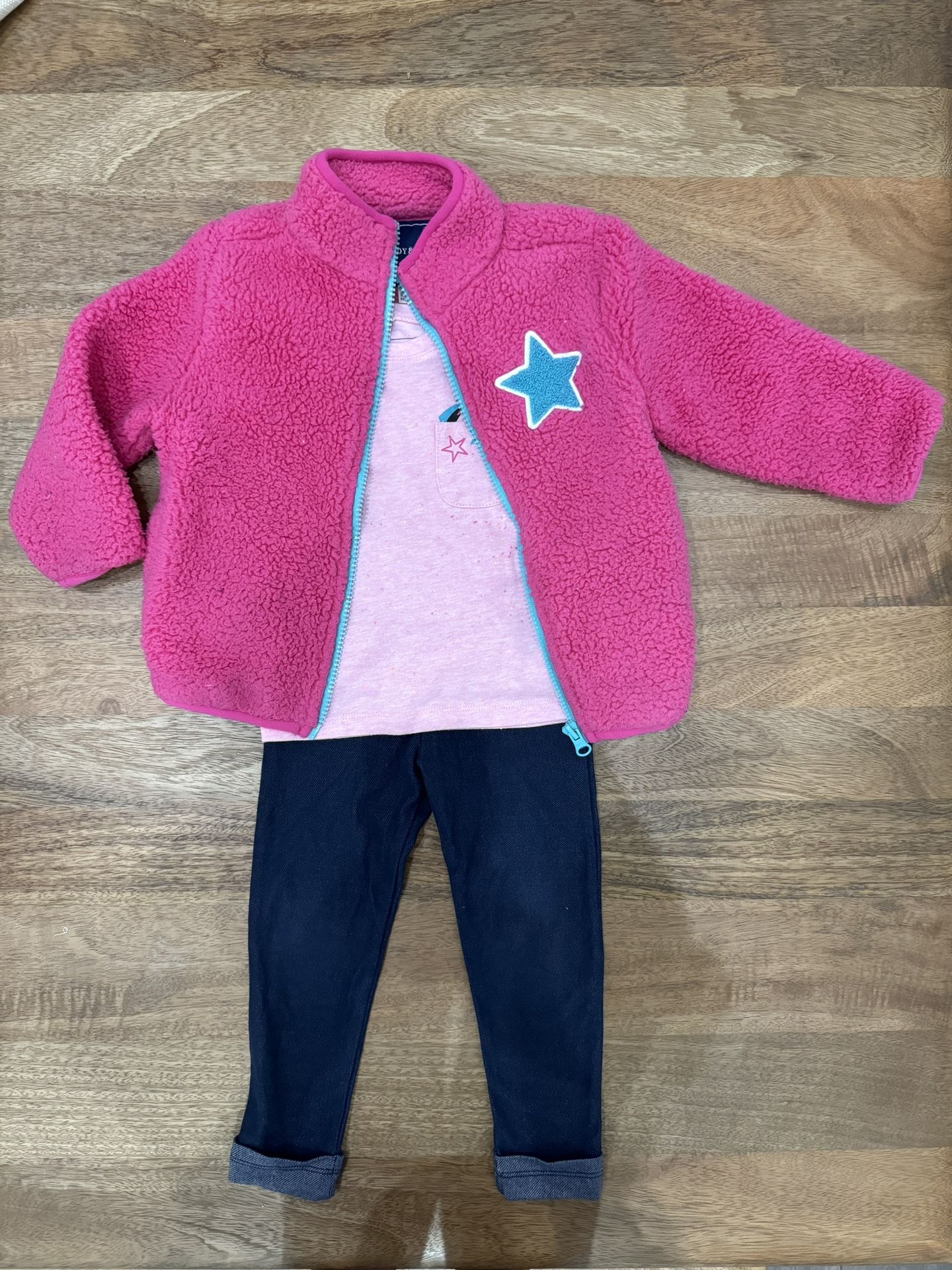 Size 2T Andy & Evan Toddler 3-Piece Sherpa Jacket, Leggings, and Tee Set