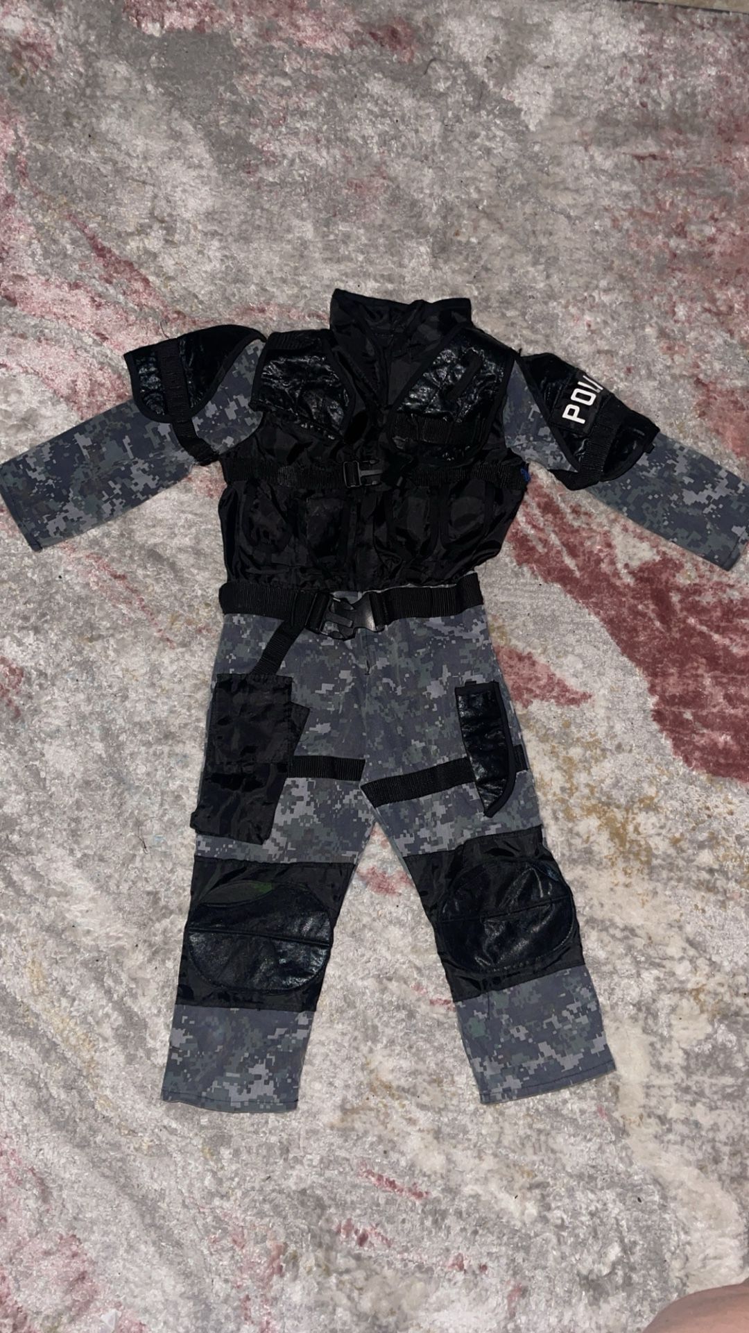 Used Has some damage Good for dress up Comes with police badge No size on costume I would say fits 3t-4t