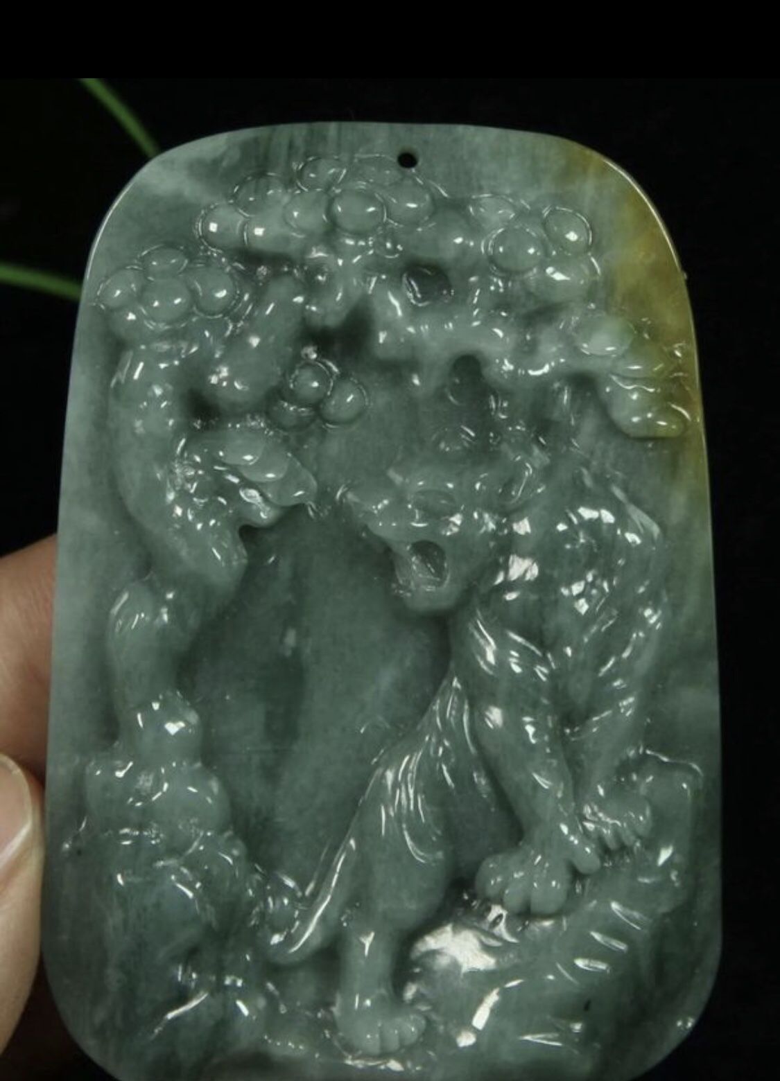 Natural green A color jadeite carved tiger pendant