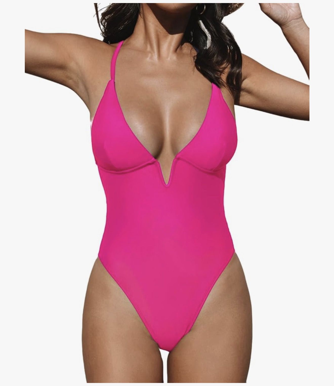 CUPSHE Women Swimsuit One Piece Bathing Suit Deep V Neck Crisscross Back Adjustable Strap