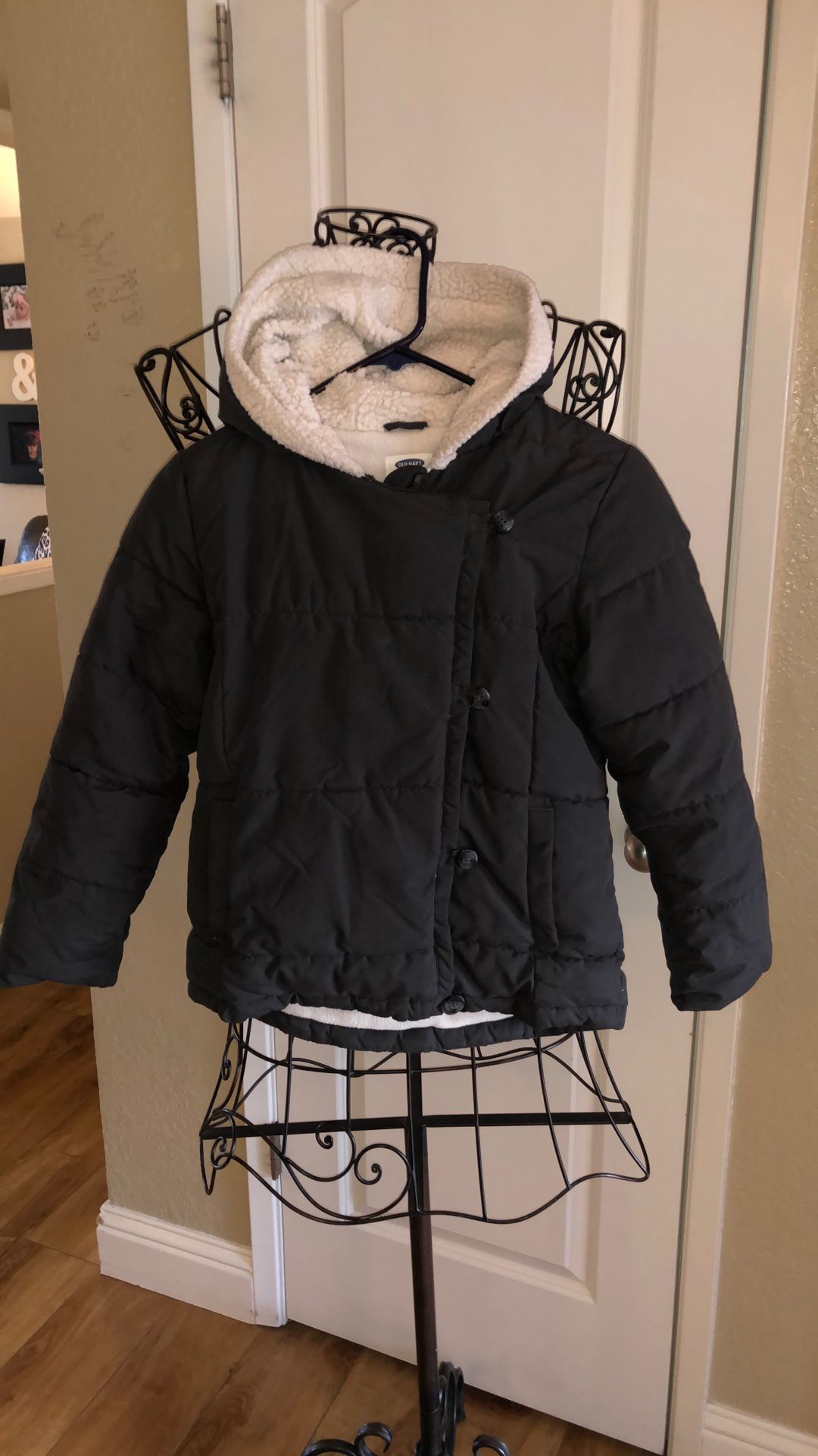 Old Navy Sherpa/fleece like coat with hood. Great condition. Size 10/12