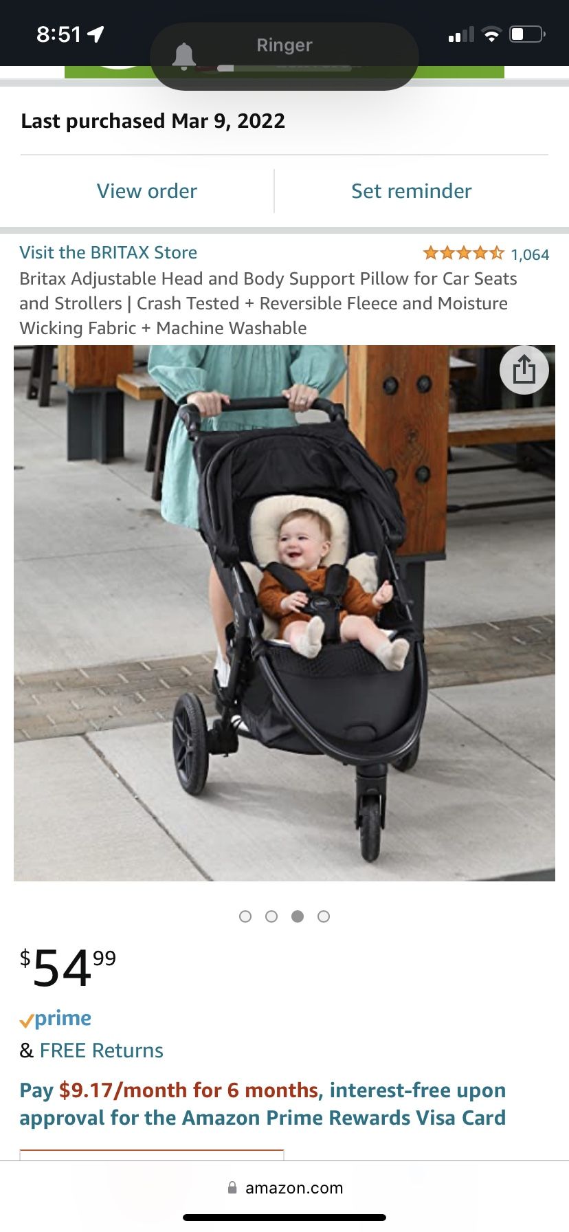 Britax Adjustable Head and Body Support Pillow for Car Seats and Strollers | Crash Tested + Reversible Fleece and Moisture Wicking Fabric + Machine Washable