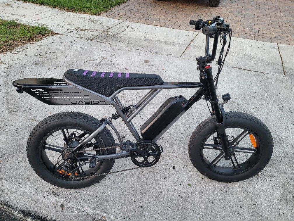 Jasion RetroVolt Pro 52v 25ah Battery 750w 32mph Upgrades Mag Wheels Upgraded front Air Suspension Forks Upgraded Sport seat for two Rear spring suspension Color Display 7 speed 50 mile Range Minimum New Full Hydraulic Breaks Front and rear LED lights Foot Pegs for passenger Keys and charger included