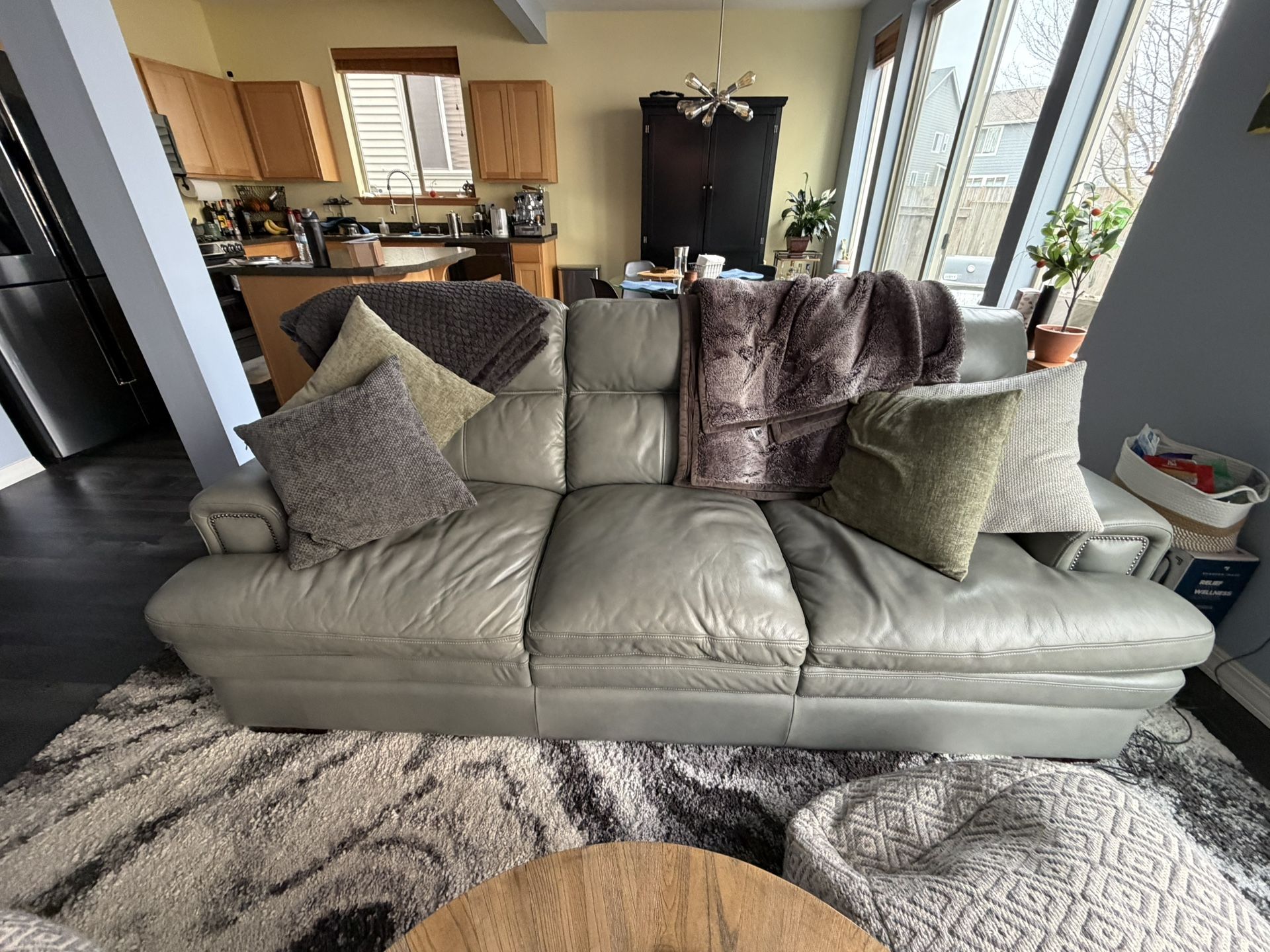 3 seater, Lazy Boy Leather Couch. Gently used. Silver button details on arms. Wooden legs. You pick up from us. Serious inquiries only. Blankets and throw pillows NOT included.
