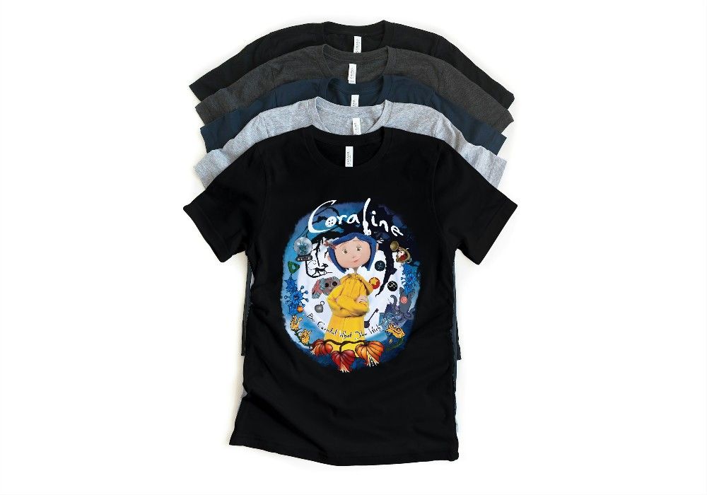 Cute Coraline design. Available in multiple shirt colors and sizes. Also available in sweatshirts ($30) and hoodies ($40). Located in Beaverton