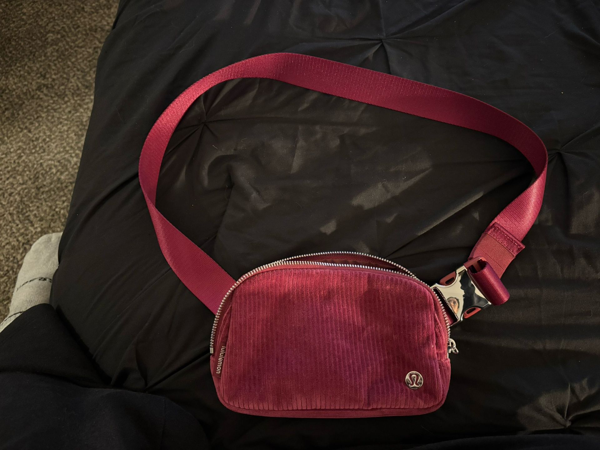 Everywhere Belt Bag 1L Corduroy Burgundy (deep luxe/silver) Zip close Adjustable strap Bag dimensions: 7.5"' x 2" x 5"
