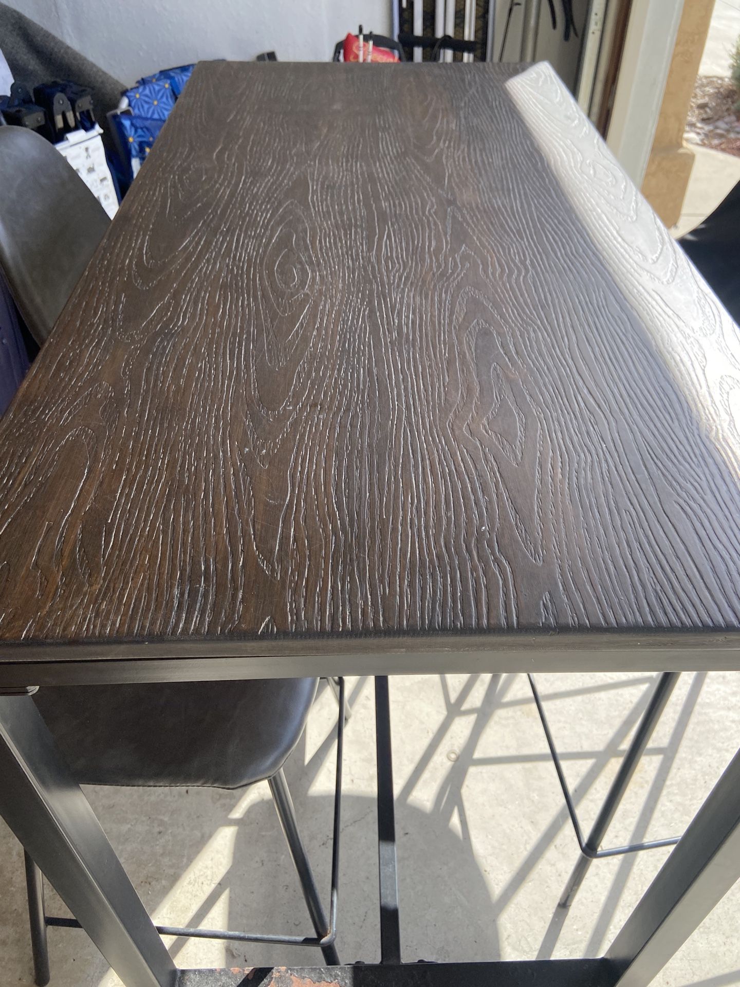 This bar height table and chair set is perfect for a small apartment or small entertainment area. It’s 3FT high so can be used like a belly bar table as well. Table is walnut brown while the 4 chairs are a distressed gray. Used but in good shape, still has a lot of life in it. H- 36.5” L- 47.5” W- 24” $50 for the Table $50 for the Chairs
