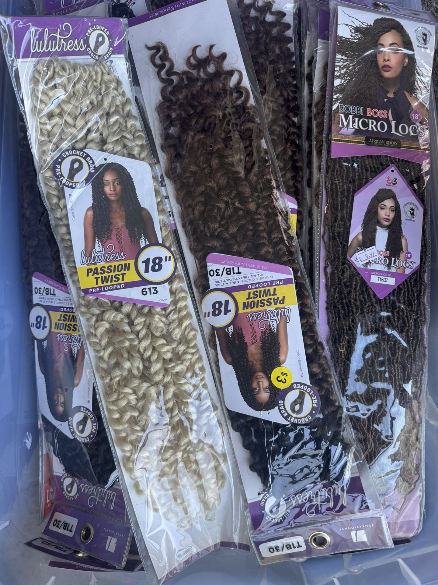 Hair are 3 dollar each,store closing,they are crochet and sewin