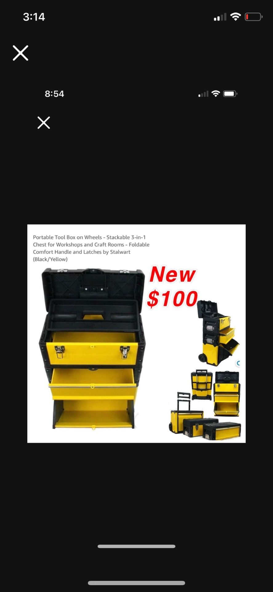New Portable Tool Box on Wheels - Stackable 3-in-1 Chest for Workshops and Craft Rooms - Foldable Comfort Handle and Latches by Stalwart (Black/Yellow) $100 East Palmdale cash only