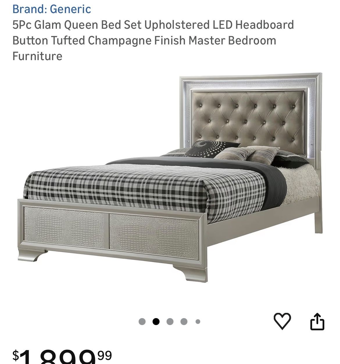 Beautiful glam queen LED lights on headboard has a champagne color finish. Must go asap it is in great condition!