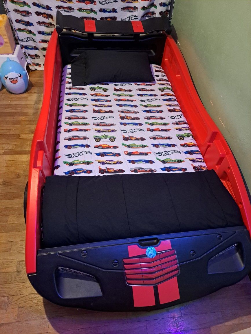 Perfect for the young racer in your life. Twin sized car bed frame. Mattress and accessories not included.