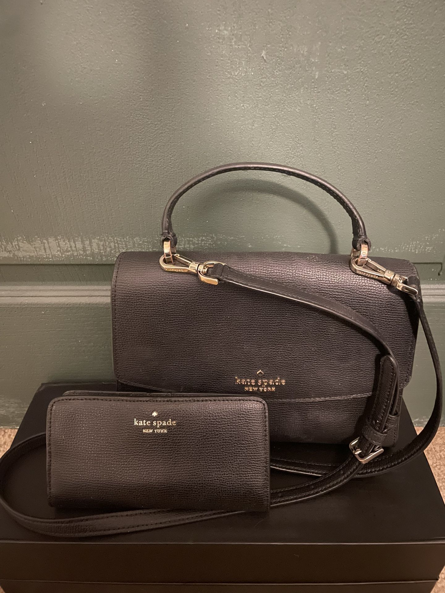 kate spade black satchel crossbody. medium wallet included.