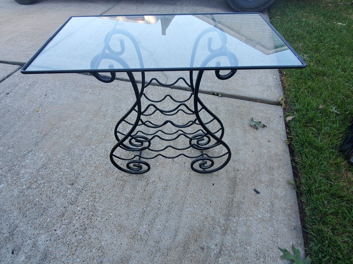 One nice glass table and wine bottle rack