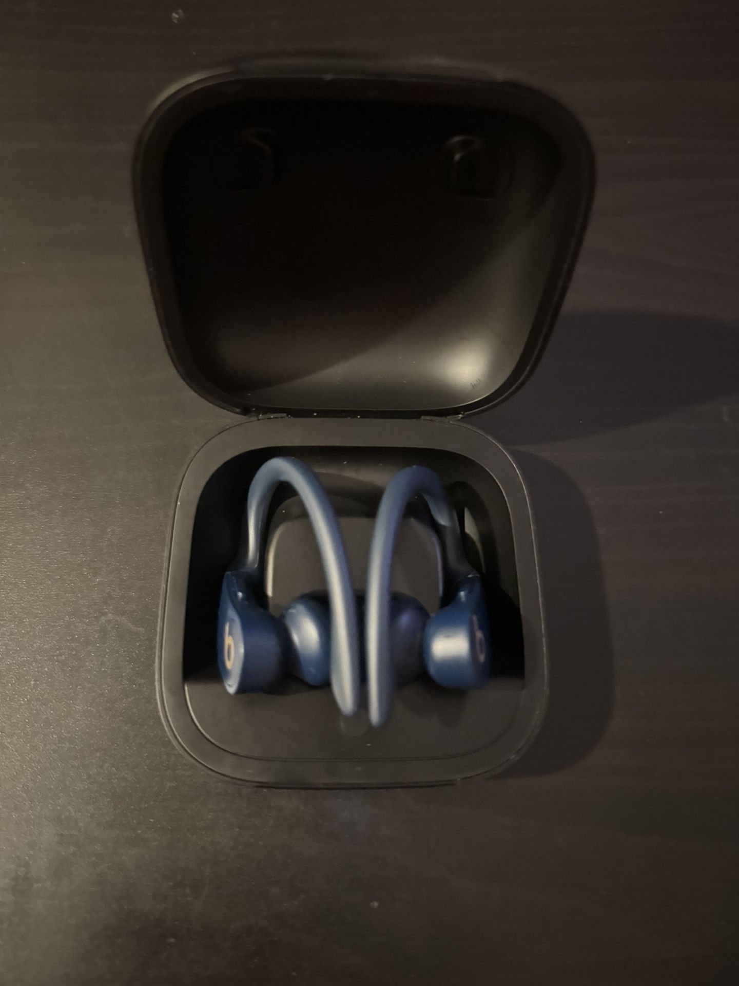 Lightly used Beats By Dre Wireless Earphones Sport Navy Blue. Fully functioning, great for working out.