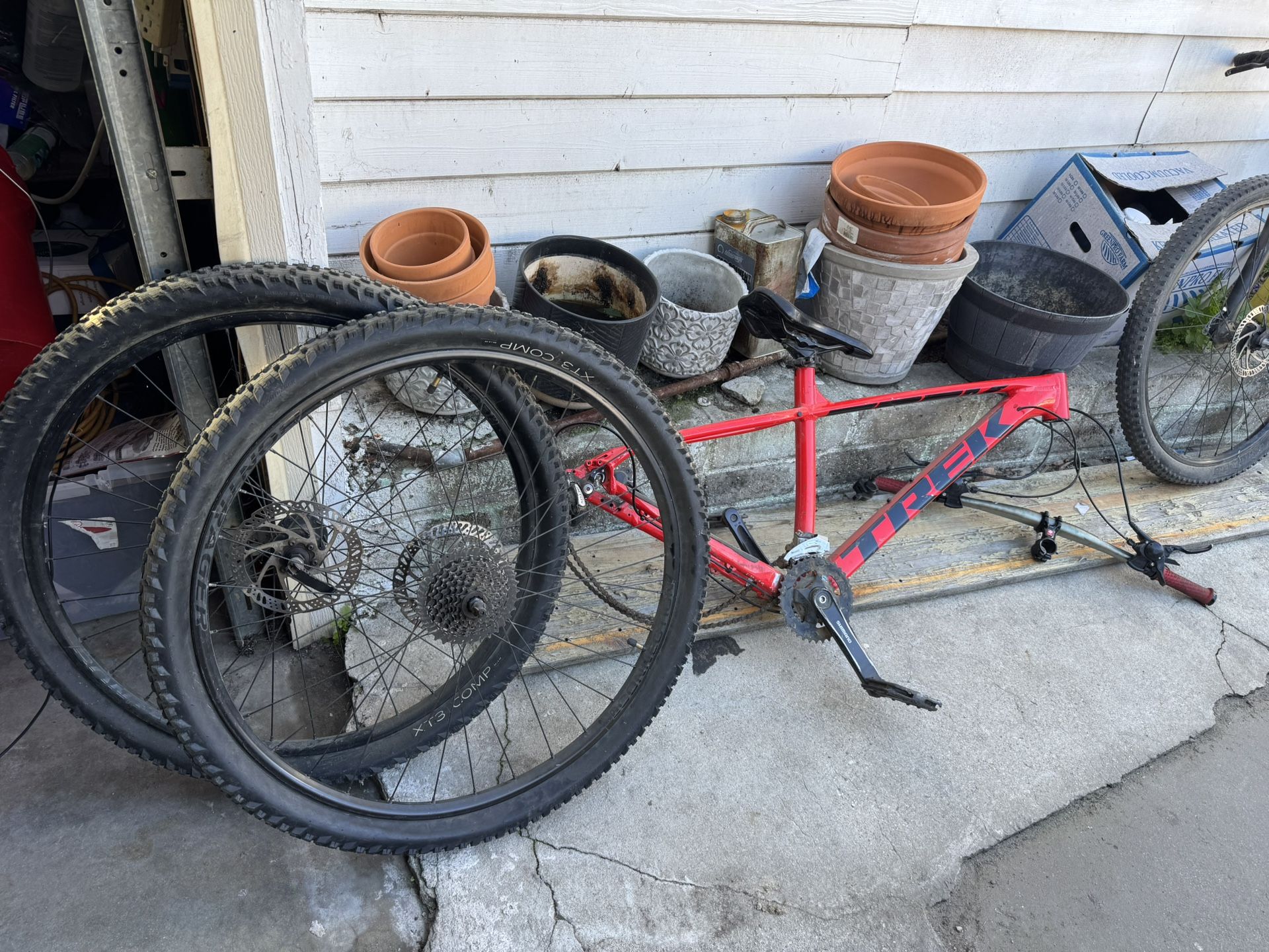 Trek marlin 6 frame. I have both wheels for it with good tires but the front rim is bent. Needs work or just use for parts. 29inch wheels / Large Frame