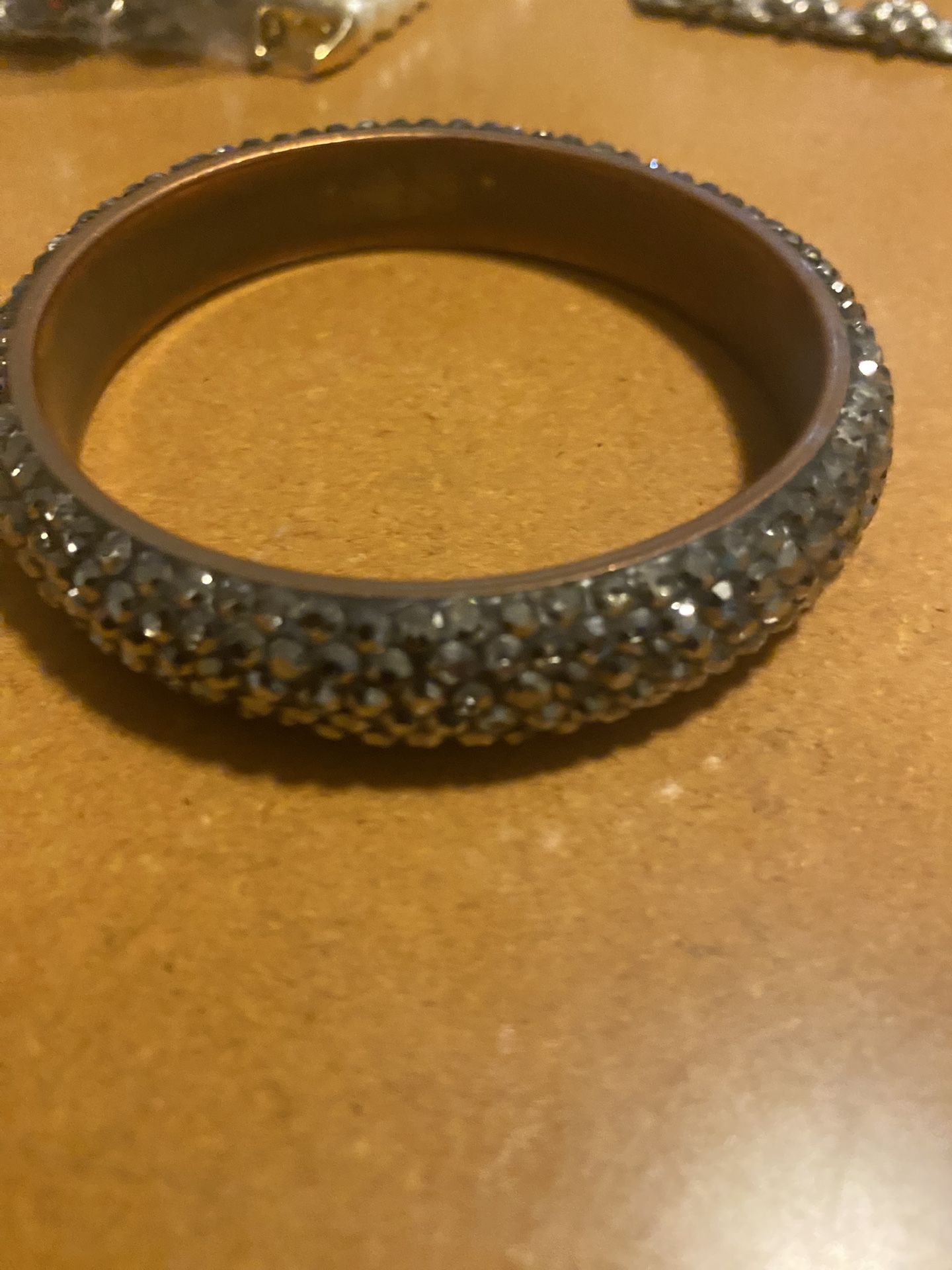 Talk about bling bling. This is really bling bling on a slip on Bingo. I remember this. I bought this back in like 1970 so I guess you could call it vintage. I bought it when I was going to a black-and-white formal and I wanted to stand out so you can tell by the middle inside it is old, but it’s still in pretty good condition and it’s still bling bling.