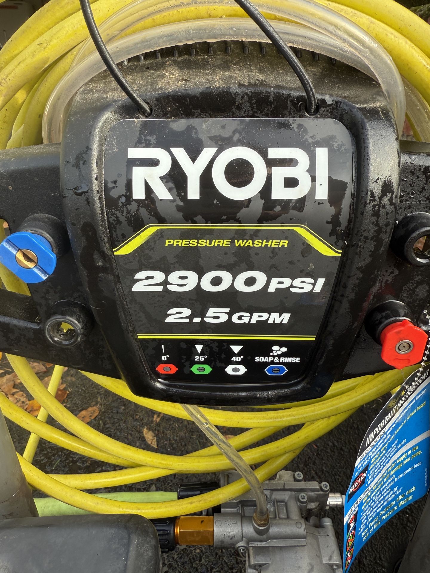 Ryobi pressure washer, bought new for $250 a year ago used it 3 times but just taking up space now runs great starts ups relatively easy