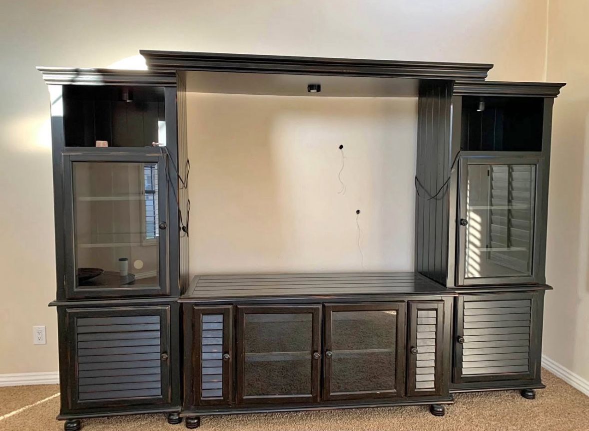 Helping my friend sell this item, item location is in Gilbert, close to downtown Gilbert. Entertainment center: 9’6” wide 6’9” tall 1’8” deep 5’ wide opening 4’ tall opening You’ll need helpers and a big vehicle. This is heavy and large.